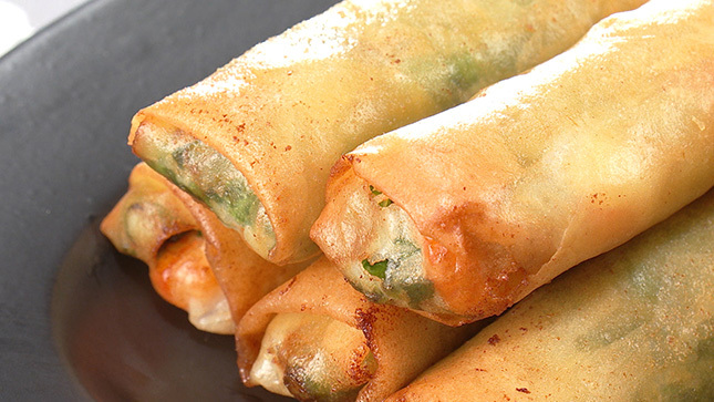 春巻きの皮で巻く前に、具材をすべて6等分にしておくと、作業がしやすくなります