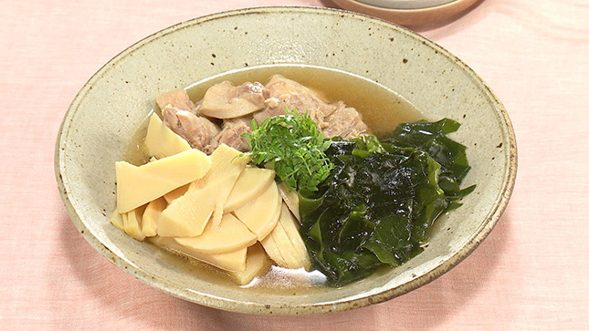 たけのことわかめの煮ものに鶏肉を加えることで、うまみとボリュームをアップします