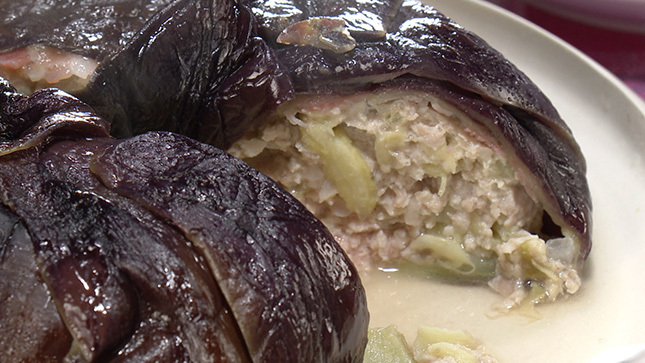 なすの果肉は、切らずに肉だねに混ぜることで、存在感が出ます