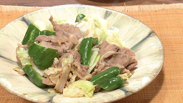 豚肉、ピーマン、キャベツのみそマヨ炒め