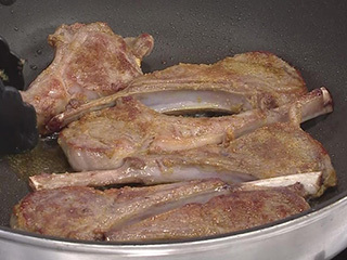 蒸し焼きにする前に、ラムチョップに香ばしい焼き色をつけるのがポイント!