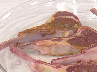 ラムチョップにまぶす調味料が全体の味つけになるので、しっかりともみ込んでおきましょう