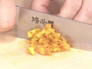 かぼちゃの皮やワタにも、食物繊維などの栄養が含まれているので、捨てるなんてもったいない。皮つきのまま電子レンジにかけてつぶします。ワタは細かく刻み、玉ねぎと一緒に炒めて使いきります。 種をとり除き、ワタのみを細かく刻む。ワタはいたみやすいので、鮮度のよいうちに使う。