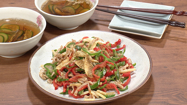 豚肉、ピーマン、たけのこの大きさをそろえるように切るのが、きれいに仕上げるポイント!