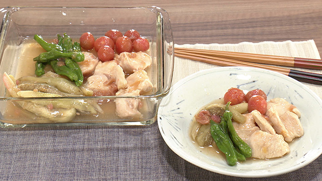 ミニトマトはひと手間かけて湯むきをすると、口当たりがよく、味もなじみやすくなります