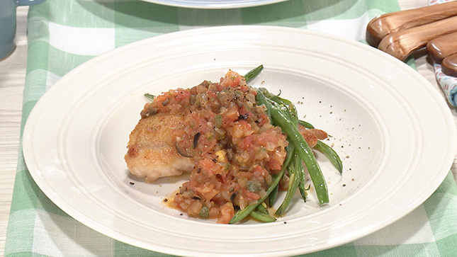 これからの時季のさやいんげんは太くなるので、縦半分に切ると、やわらかく焼き上がります