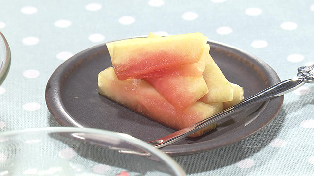 すいかの皮も捨てずに漬けものに活用すると無駄がありません。夏の常備菜にぴったりですよ!