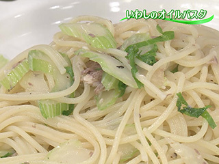 材料・作り方(2人分) 1:湯2ℓを沸かし、塩大さじ1/2を加えてスパゲティ160gを表示時間通りにゆでる。 2:いわしのオイル煮1尾分は骨、尾を除いてほぐす。セロリ(小)1本(80g)は斜め薄切りにし、セロリの葉5枚は細切りにする。 3:フライパンにいわしのオイル煮の煮汁大さじ2を熱し、(2)のいわし、セロリを炒め、(1)のゆで汁大さじ4を加えてなじませる。湯をきった(1)とセロリの葉を加えて炒め合わせ、塩、こしょう各少々で味をととのえる。器に盛り、いわしのオイル煮の煮汁少々をかける。 この煮汁は、水分が飛んでほとんどが油。いわしのうまみ、香りが移っているので、炒めものやパスタに炒め油として使えます。セロリなどの香りのよい野菜と組み合わせるのがおすすめ。