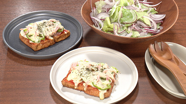 厚揚げは焼くので、油抜きの必要はありません。水気をふいてから、厚みを半分に切って使いましょう