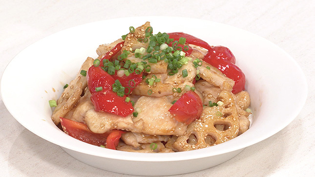 れんこんと鶏胸肉に片栗粉をまぶしてから揚げることで、しっかりと甘酢がからみます