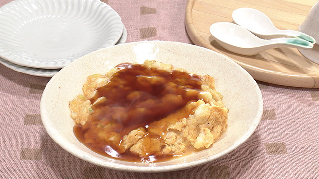 卵は余熱でも火が通るので、炒めすぎに注意して、半熟状になったら器に盛りましょう