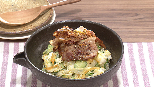 (塩一つまみ 粗びき黒こしょう小さじ1/2)