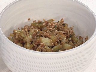 材料・作り方(作りやすい分量) 1:かぶの葉1わ分(正味220g)は、茎は1㎝幅に切り、葉は粗く刻む。 2:フライパンにごま油大さじ1を強めの中火で熱し、(1)、ちりめんじゃこ20g、しょうがのみじん切り2かけ分を入れて3分ほど炒める。 3:砂糖大さじ1、酢、しょうゆ各大さじ2の順に加え、汁気がなくなるまで炒める。火を止め、削りがつお1袋(2.5g)、炒り白ごま大さじ1+1/2を混ぜる。粗熱がとれたら保存容器に入れ、冷蔵で1週間保存可能。 かぶの葉はビタミン類などが豊富なので、捨てずに活用を。かぶを買ってきたら鮮度がよいうちに葉を切り落とし、炒めてふりかけにして楽しみましょう。