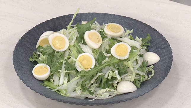 生の白菜と春菊をサラダに使い、みずみずしさを味わいましょう