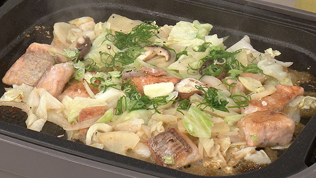 脂が少なめの秋鮭は、ちゃんちゃん焼きのように蒸し焼きにすると、しっとりおいしくいただけます