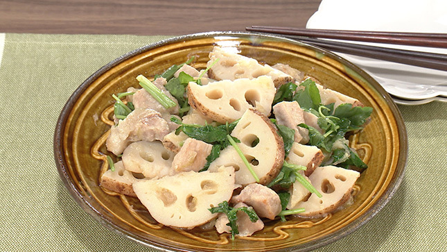 豚肉はとんカツ用を使い、れんこんも皮ごと厚めに切ることで、食べごたえのある一皿に仕上げましょう