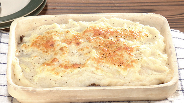 じゃが芋はしっかりとやわらかくなるまでゆでてからつぶして、なめらかなマッシュポテトにしましょう