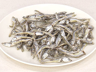 食べる煮干しは、だしをとるためではなくてそのまま食べられるように、小さめのかたくちいわしの稚魚を煮て干したもの。ごまめは同じかたくちいわしの稚魚を、煮ないでそのまま素干しにしたもの。ごまめは空炒りして使うが、食べる煮干しは臭みが少ないので揚げ焼きにして使う。
