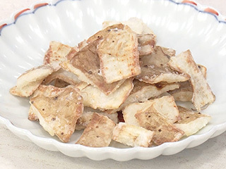 材料・作り方(作りやすい分量) 1:長芋の皮(上記参照)約200gに片栗粉大さじ1をまぶし、手で軽くもむ。ねっとりとしてきたら、さらに片栗粉大さじ1をまぶす。 2:フライパンに1㎝深さの油に入れて中火にかけ、温まったら(1)を入れる。表面が固まってきたら返しながら揚げる。カリッとなったらとり出し、塩少々をふる。 野菜は飾り切りにすると華やかに仕上がりますが、どうしても切れ端が出てしまいます。形がさまざまなので、細かく刻んだり、細切りにしたりしてみそ汁や豚汁の具材に。また野菜の切れ端と干し椎茸のもどし汁でおからを煮ても。長芋の皮は片栗粉をまぶして揚げると、サクサク、カリカリのおつまみになります。