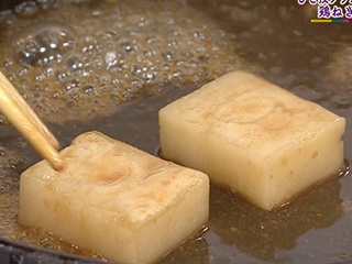 小麦粉を練った生地を棒に巻きつけ、直火で焼き、つぶして板状に乾燥させた麩。山形県の庄内地方の特産品「庄内麩」が有名。