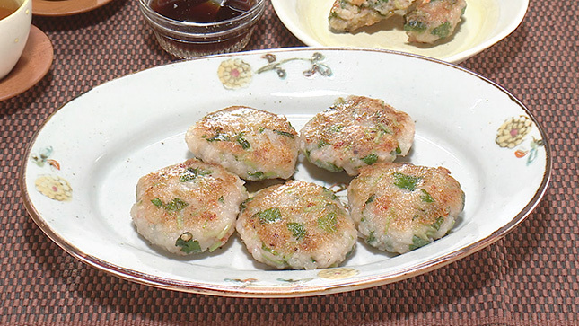 三つ葉の香りがアクセントになります。もちもちとした食感をお楽しみください!