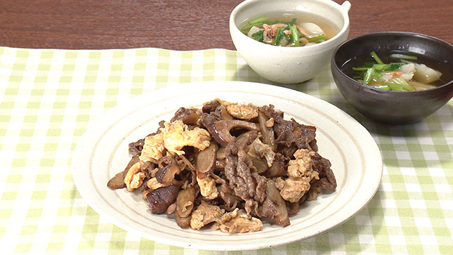 牛肉とごぼうの甘辛卵炒め