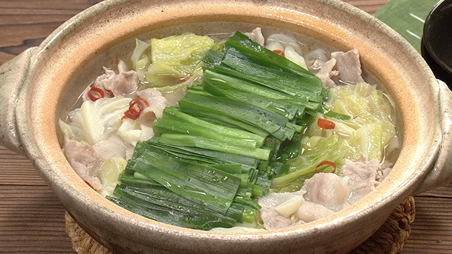 にんにくは、たっぷり2かけ使います。にんにくと唐辛子を効かせることで、もつ鍋風の味わいになります