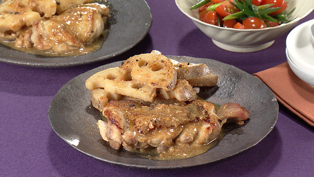 甘酒と水を加えたらふたをして、鶏肉を蒸し焼きにすることで、ふっくらやわらかに仕上がります