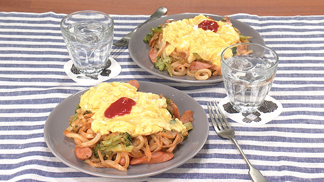 スパゲティの代わりに冷凍うどんを使うことで、手軽に作ることができます