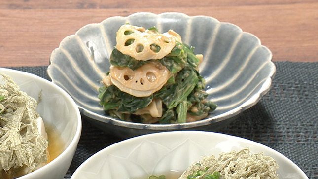 ほうれん草はゆでた後に、しょうゆを加えて軽く絞る「しょうゆ洗い」をすると、味がぼやけずおいしいあえものになります