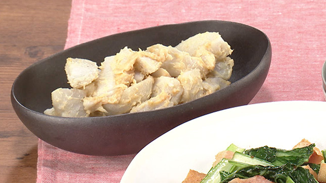 里芋は電子レンジにかけると皮が簡単にむけて、ねっとりとした食感が味わえます