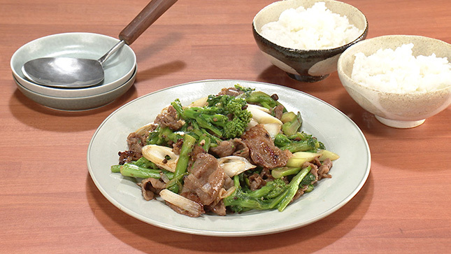 菜の花は先に蒸しゆでしておき、最後に炒め合わせることで、色鮮やかに歯ごたえよく仕上がります