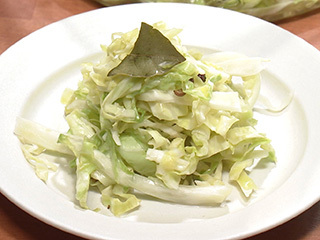 材料・作り方(作りやすい分量) ① 春キャベツ1/4個(200g)は細切りにし、耐熱の容器に入れる。塩小さじ2/3(キャベツの重量の2%)をふり、軽くしんなりするまでもむ。 ② 小鍋に酢、水各80㎖、砂糖大さじ1、粒黒こしょう小さじ1、ローリエ1枚は半分にちぎって入れ、火にかけてひと煮立ちさせる。 ③ すぐに(1)に加え、冷めるまでおく。冷めたら食べられ、冷蔵で1週間保存可能。 この時季だけ出回る春キャベツは、みずみずしくてやわらかいのが特徴です。鮮度がよくやわらかいうちに刻んで酢漬けにして。そのまま食べてもよく、焼いた肉などのつけ合わせにも合います。