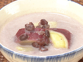 材料・作り方(2人分) ① さつま芋100gは皮ごと乱切りにし、鍋に入れて水1カップを注ぎ、火にかける。煮立ったら弱めの中火にし、ふたをしてやわらかくなるまで6~7分ゆでる。 ② ゆであずき80g、ココナッツミルク1カップ分は凍ったまま割って加え、中火にして混ぜながらひと煮立ちさせて火を通す。