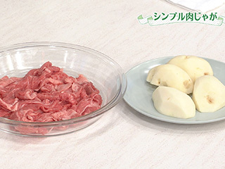 具材はこの2つ。じゃが芋は大きめに切り、返しながら煮て味を含ませます。牛肉は煮すぎると固くなるので少量を先に炒め、残りは最後に加えます。