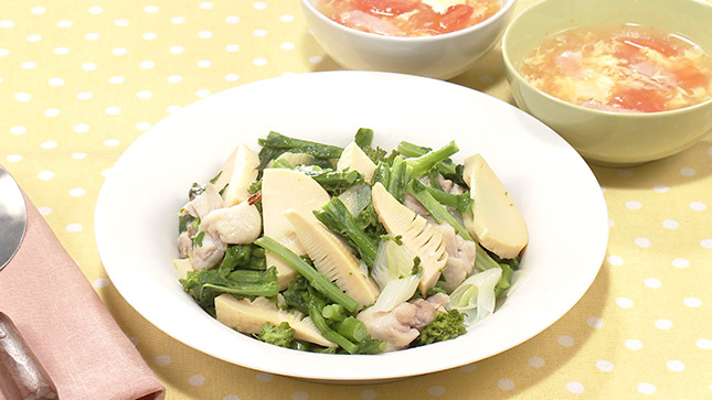 菜の花は調理する前に、水につけておくとシャキッとします。炒め上がりもみずみずしい食感に!