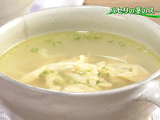 捨ててしまいがちなパセリの茎は、みじん切りにしてスープの具にすると、無駄なく味わえます