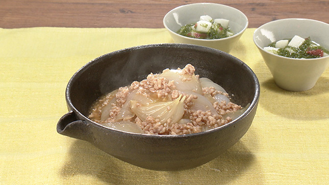 新玉ねぎの鶏そぼろ煮