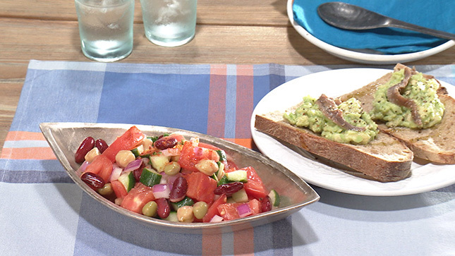 「カチュンバル」はインドの生野菜のサラダ。豆を加えることで、食べごたえをプラスします