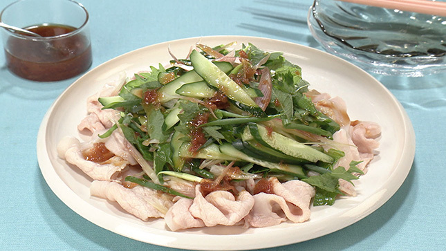 しゃぶしゃぶ用の豚肉は、70℃くらいの湯でゆでると、ふんわりとやわらかく仕上がります