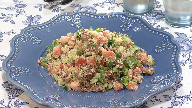 「クスクス」は世界最小ともいわれるパスタ。サラダのほか、煮込みやスープなどに混ぜて食べます