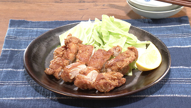 揚げ上がりをすぐには切らず、1分ほどおいて肉汁をおちつかせてから切りましょう