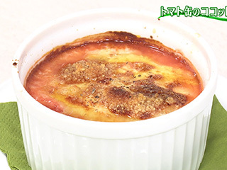 材料・作り方(2人分) ① トマト水煮(カットタイプ)1/2缶(200g)に塩小さじ1/3を混ぜ、耐熱の器に等分に入れる。卵を1個ずつ割り入れ、粉チーズ大さじ1をふる。 ② オーブントースターで卵に好みの固さに火が通るまで10分ほど焼く。オリーブ油小さじ2を等分にかけ、粗びき黒こしょう少々をふる。 トマト水煮は開封したら保存容器などに移し、冷蔵で日持ちは2~3日。冷凍保存もできますが、味が落ちる前に卵と一緒に焼いて食べるのもおすすめ。朝ごはんにぴったりです。