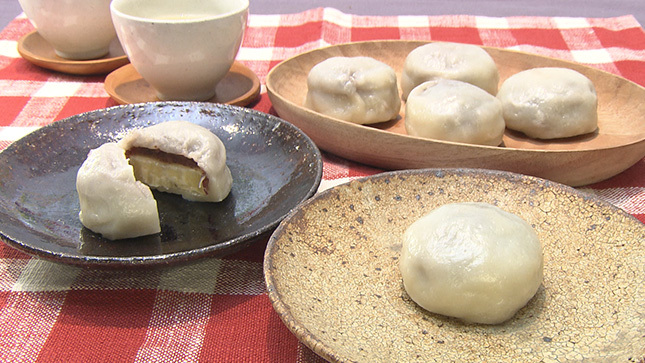 白玉粉、薄力粉を同量ずつ合わせることで、やわらかく、モチモチとした食感の生地になります