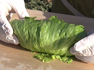 レタスはギュッと握って筒状にしてのせ、牛肉でレタスを包む。