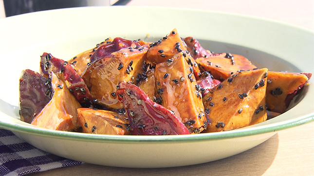 さつま芋が熱いうちにチーズやはちみつとあえましょう。混ぜすぎず、ざっくりとあえるのがポイントです