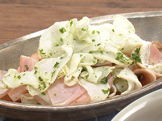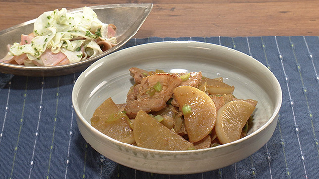 材料・作り方(作りやすい分量) ① 大根200gは皮つきのまま薄切りにし、ザルに広げて並べる。天気のよい日に風通しのよい場所で3~4時間干す。 ② ハム6枚(60g)は4等分に切る。 ③ ボウルにパセリのみじん切り小さじ2、塩少々、レモン汁、オリーブ油各大さじ1を入れてよく混ぜ、(1)、(2)を加えてあえる。 大根1/2本を購入し、炒めものに使った残りは、鮮度のよいうちに半干しにしておくと、生とは違った食感が楽しめます。水分が飛んでうまみが凝縮するので、そのままサラダに使うほか、漬けものや炒めものにも使えます。