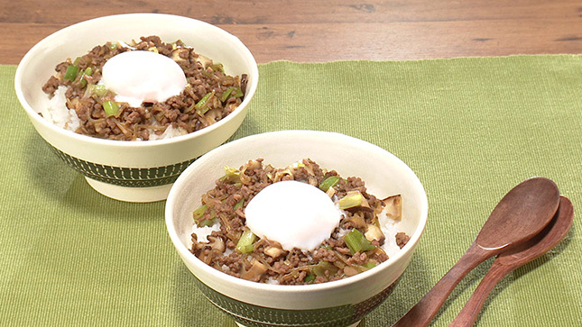 仕上げに温泉卵をのせて、混ぜながら召し上がれ!