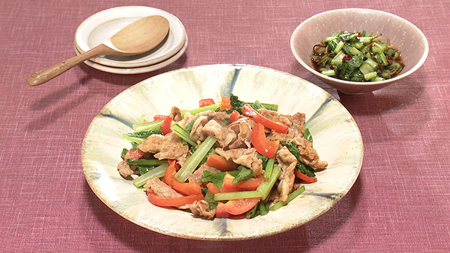 豚肉は焼き色がついて脂が出るまでしっかりと炒め、野菜はさっと炒めるのがポイント