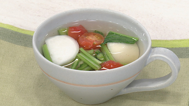 旬のかぶは葉も栄養価が高いのでぜひ活用して。ミニトマトにうまみがあるので、味つけは塩と酒だけでOK!